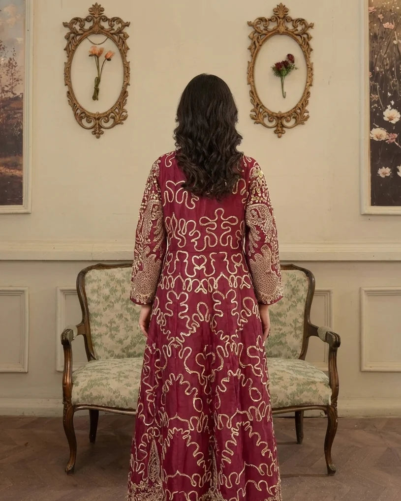 Make a statement with this organza maxi featuring heavy embroidery for a luxurious formal look. Perfect for weddings, parties, and special events — elegant, stylish, and timeless