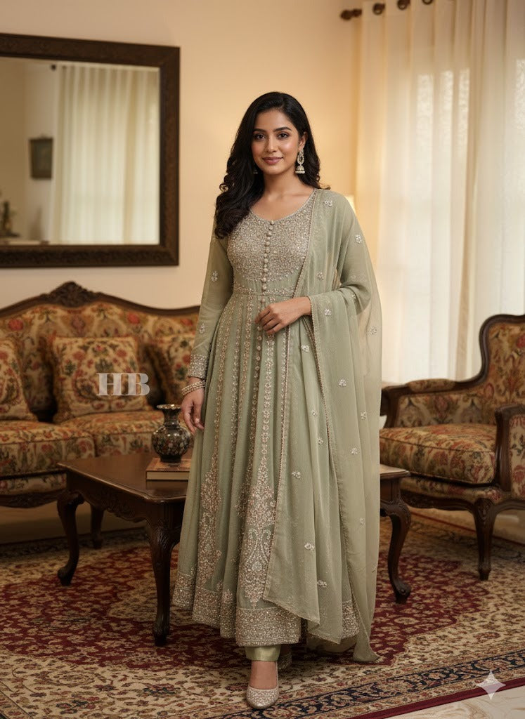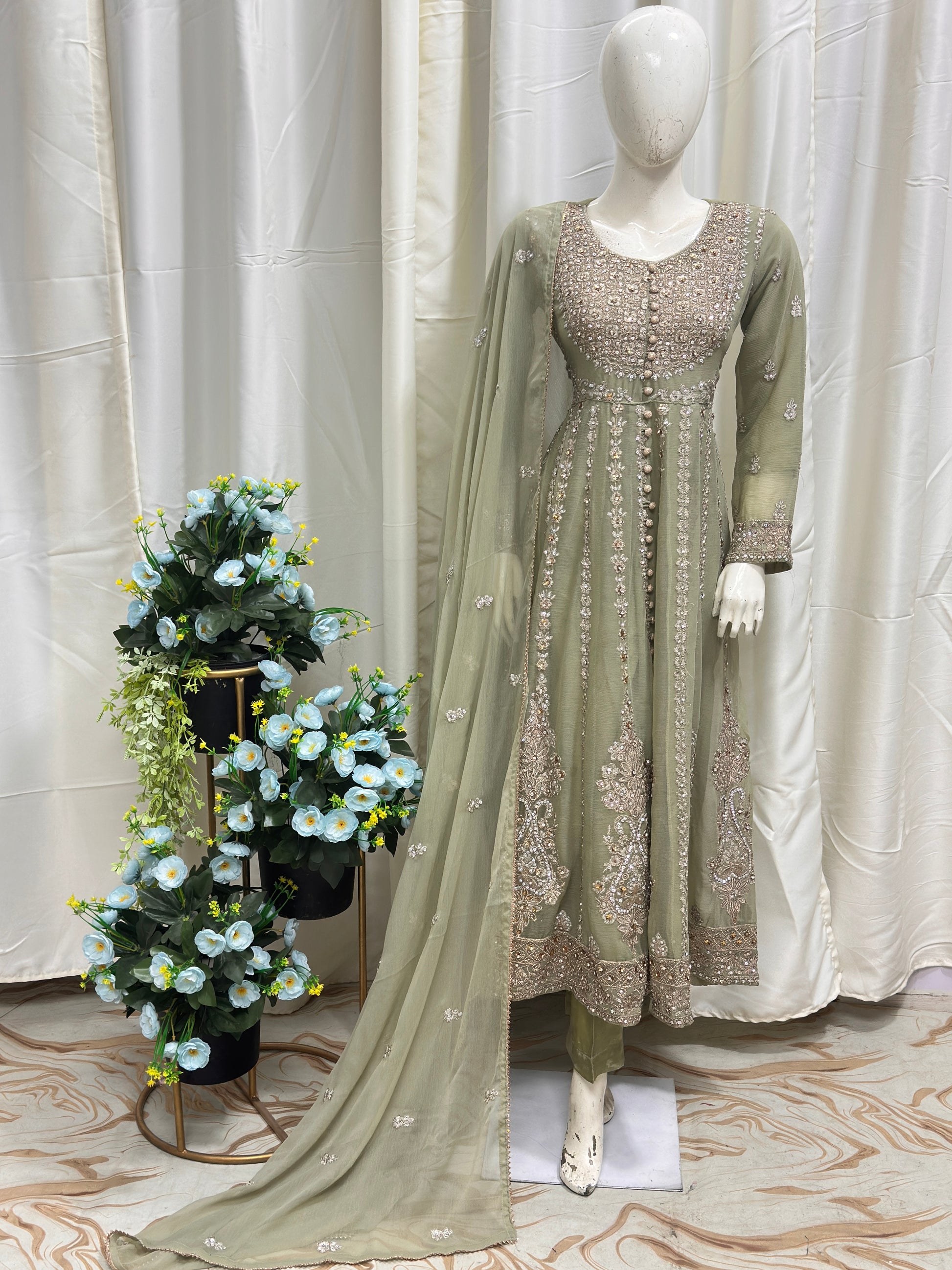 Frock: Chiffon Fabric Full embroidered with stone