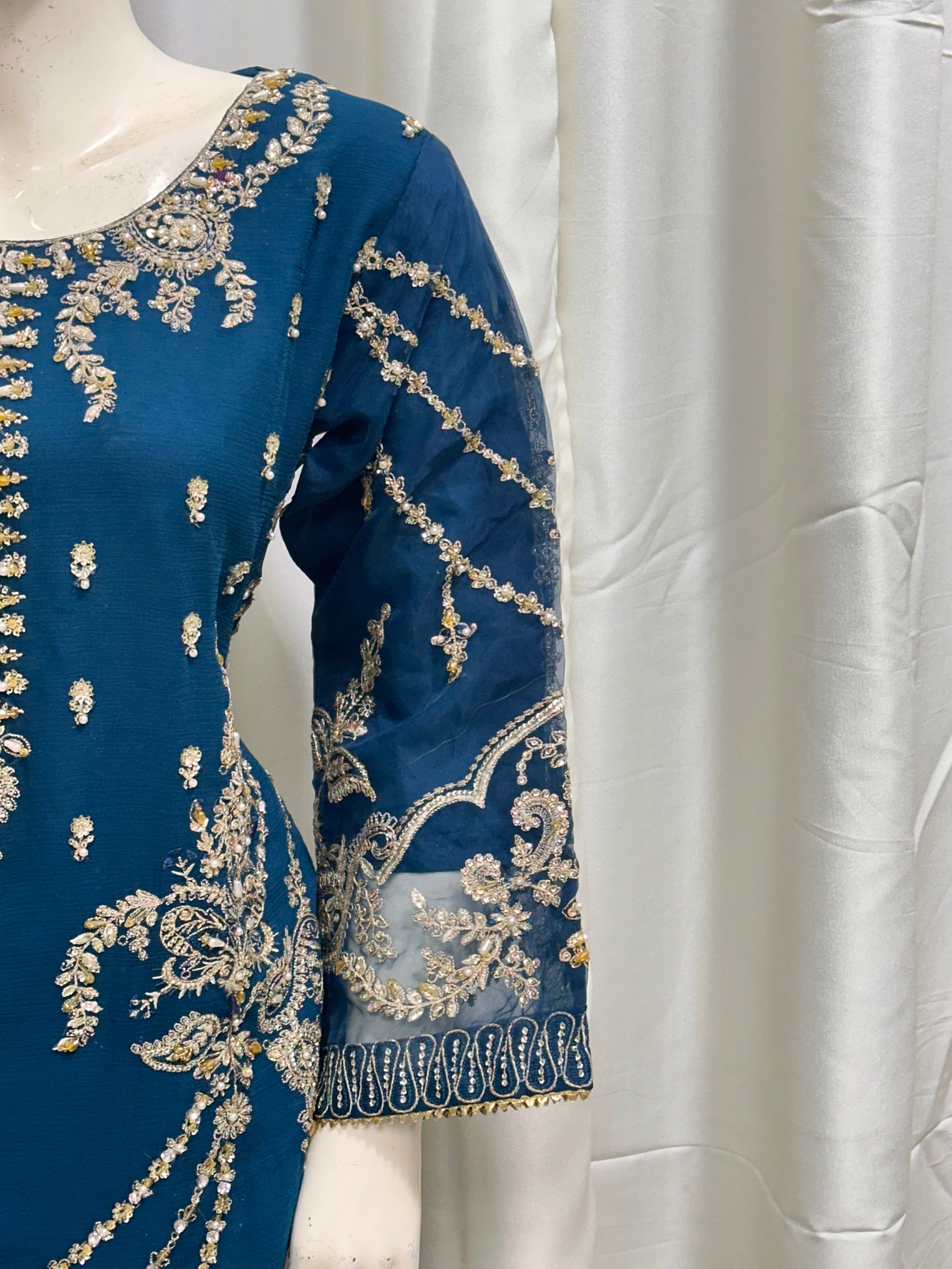 Dupatta: Fully embroidered organza dupatta with lace borders