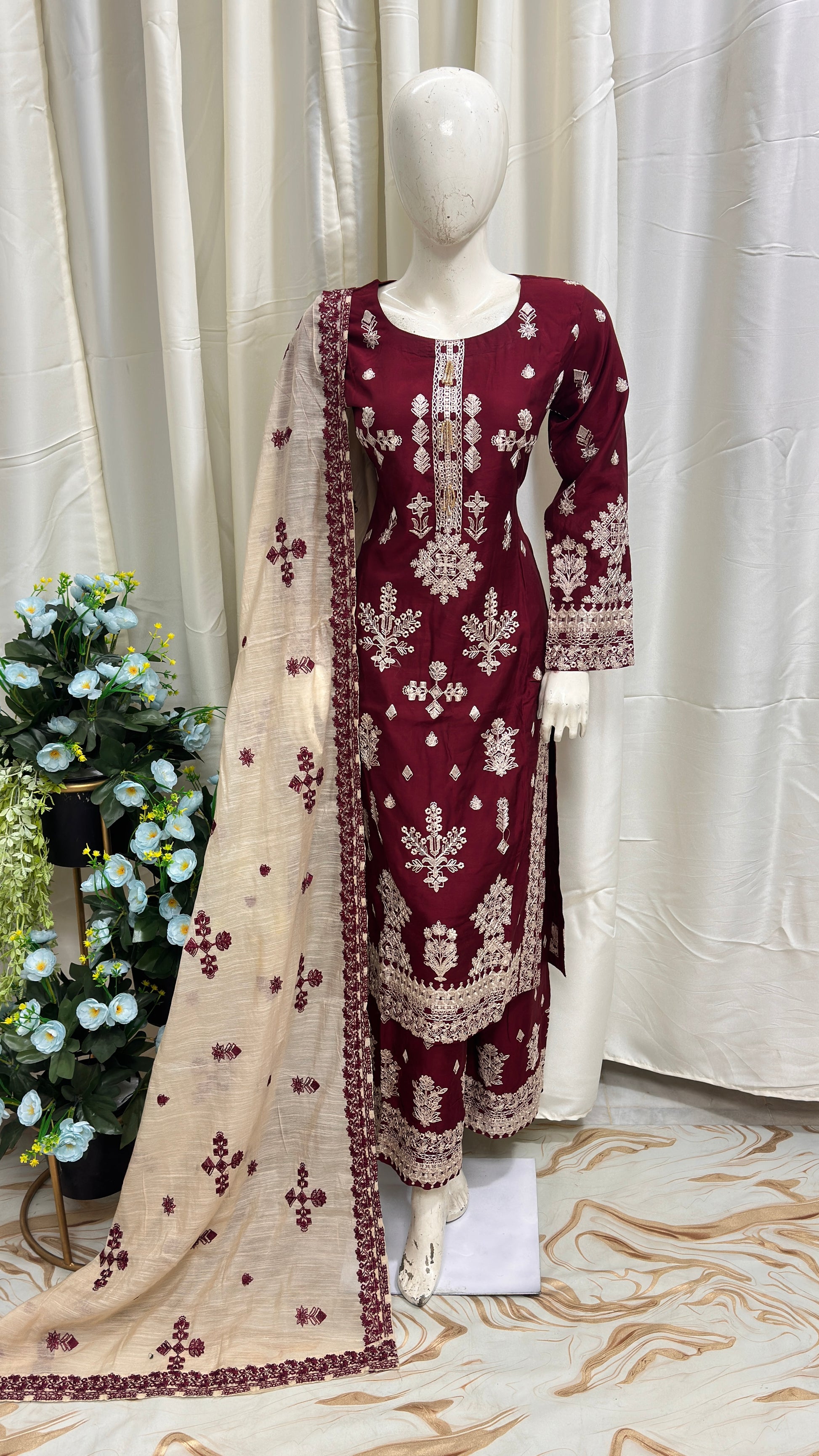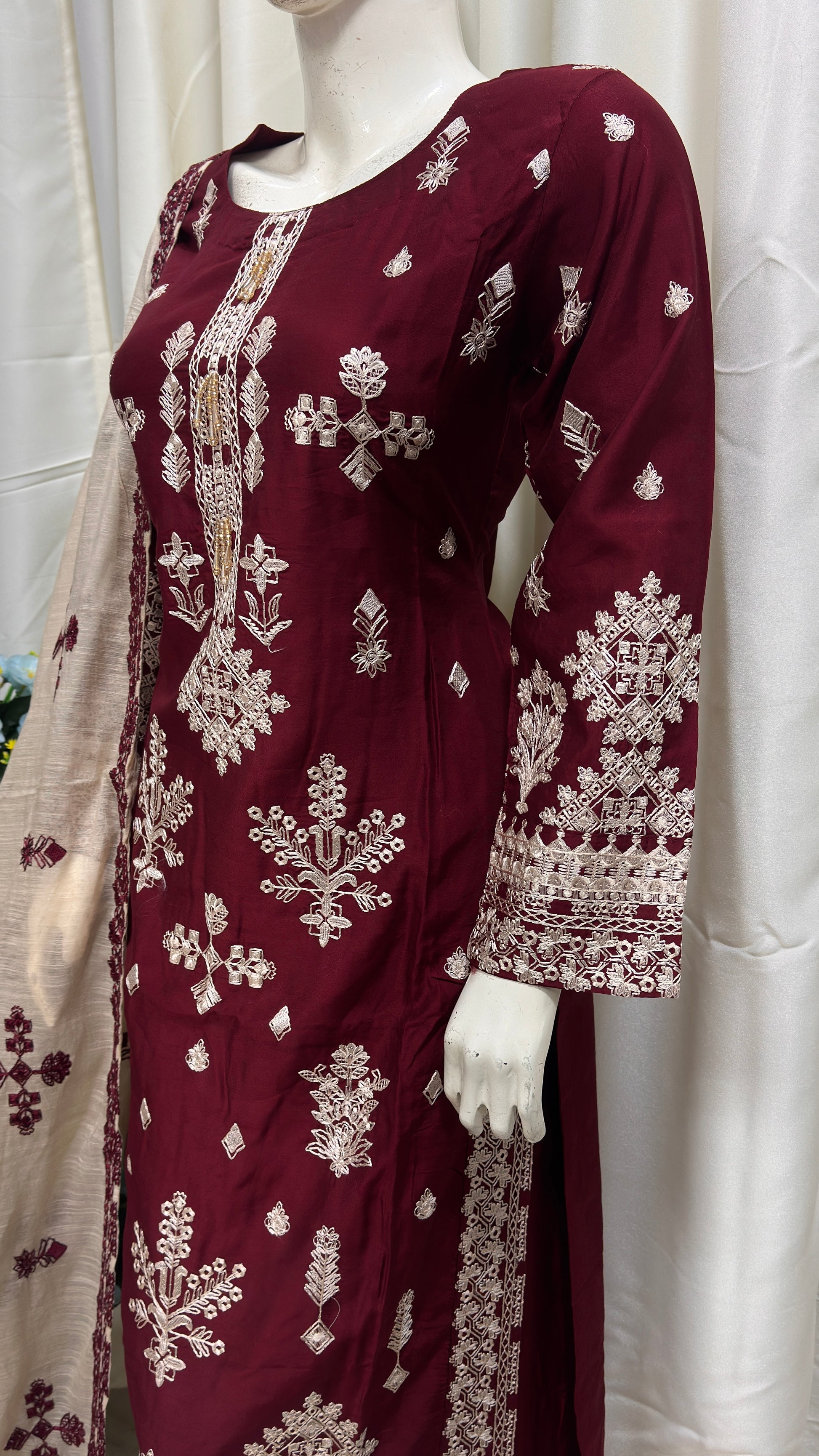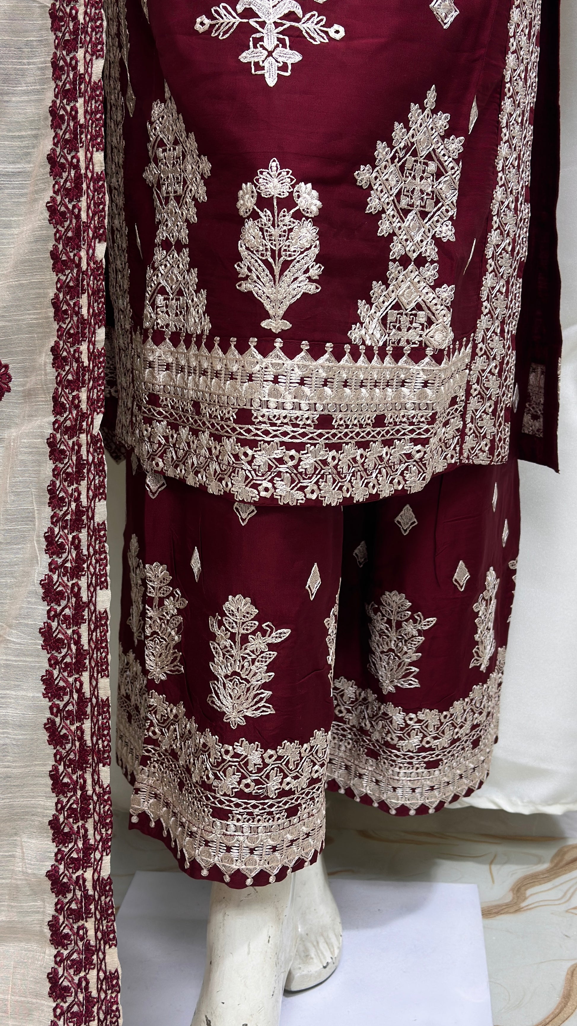 Dupatta: Fully embroidered Chiffon dupatta with lace borders