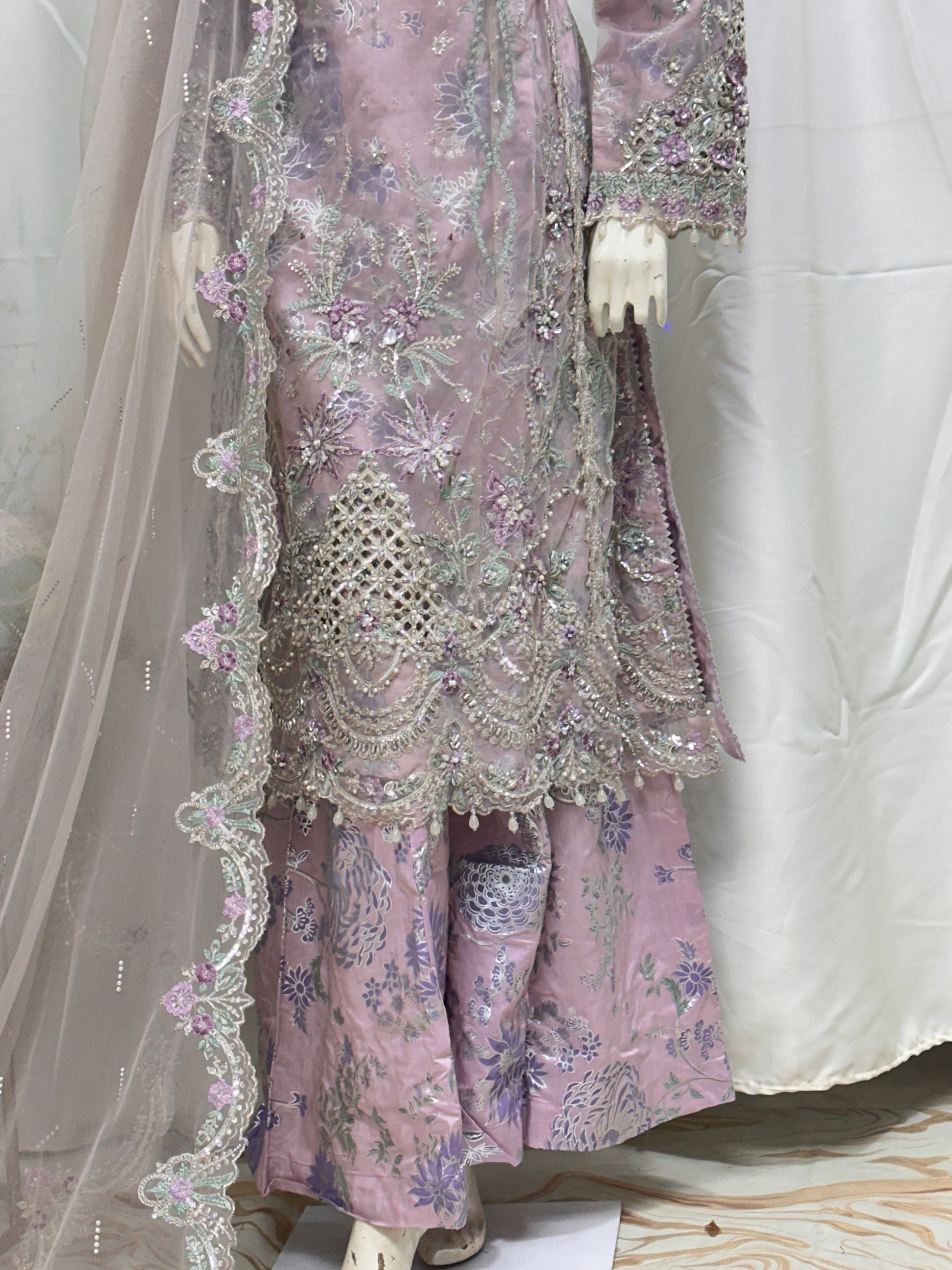 Dupatta: Net dupatta designed to drape softly and enhance the overall look.